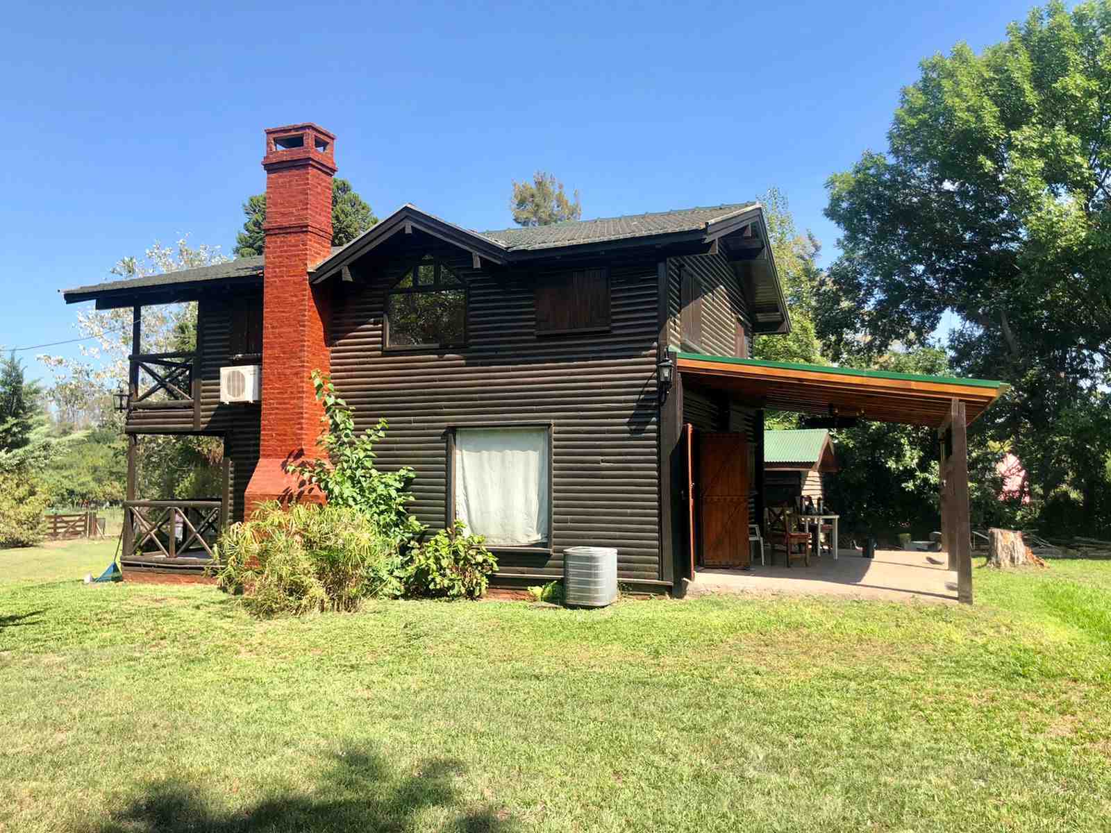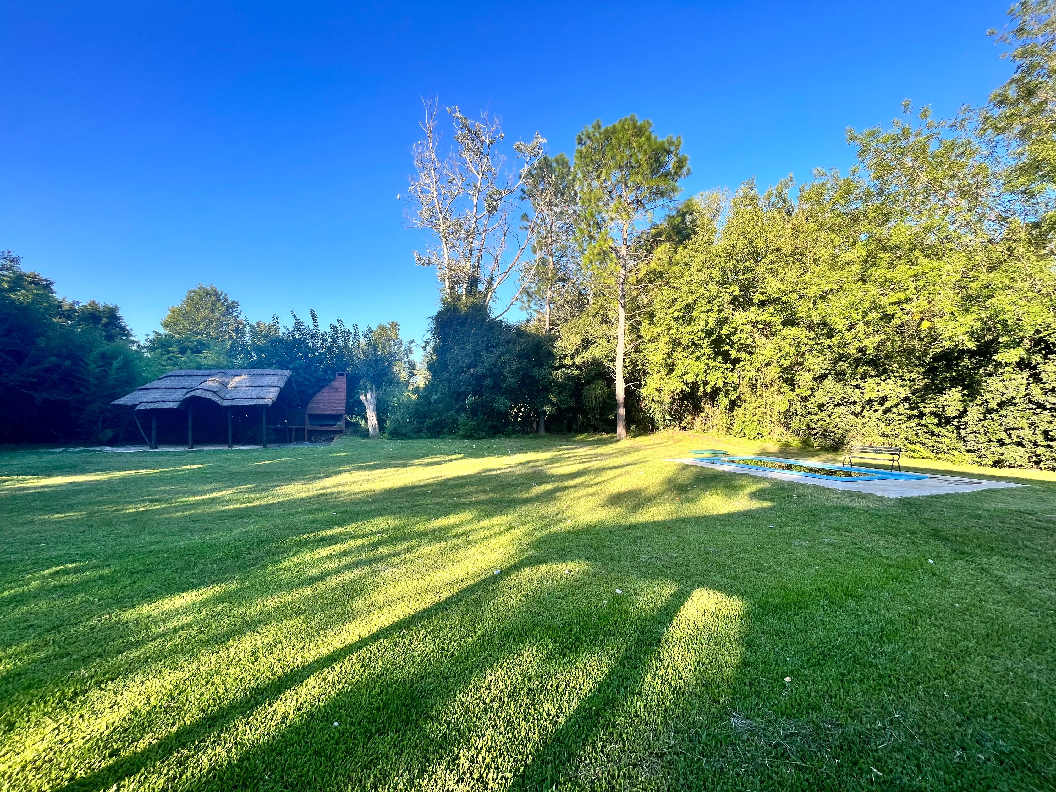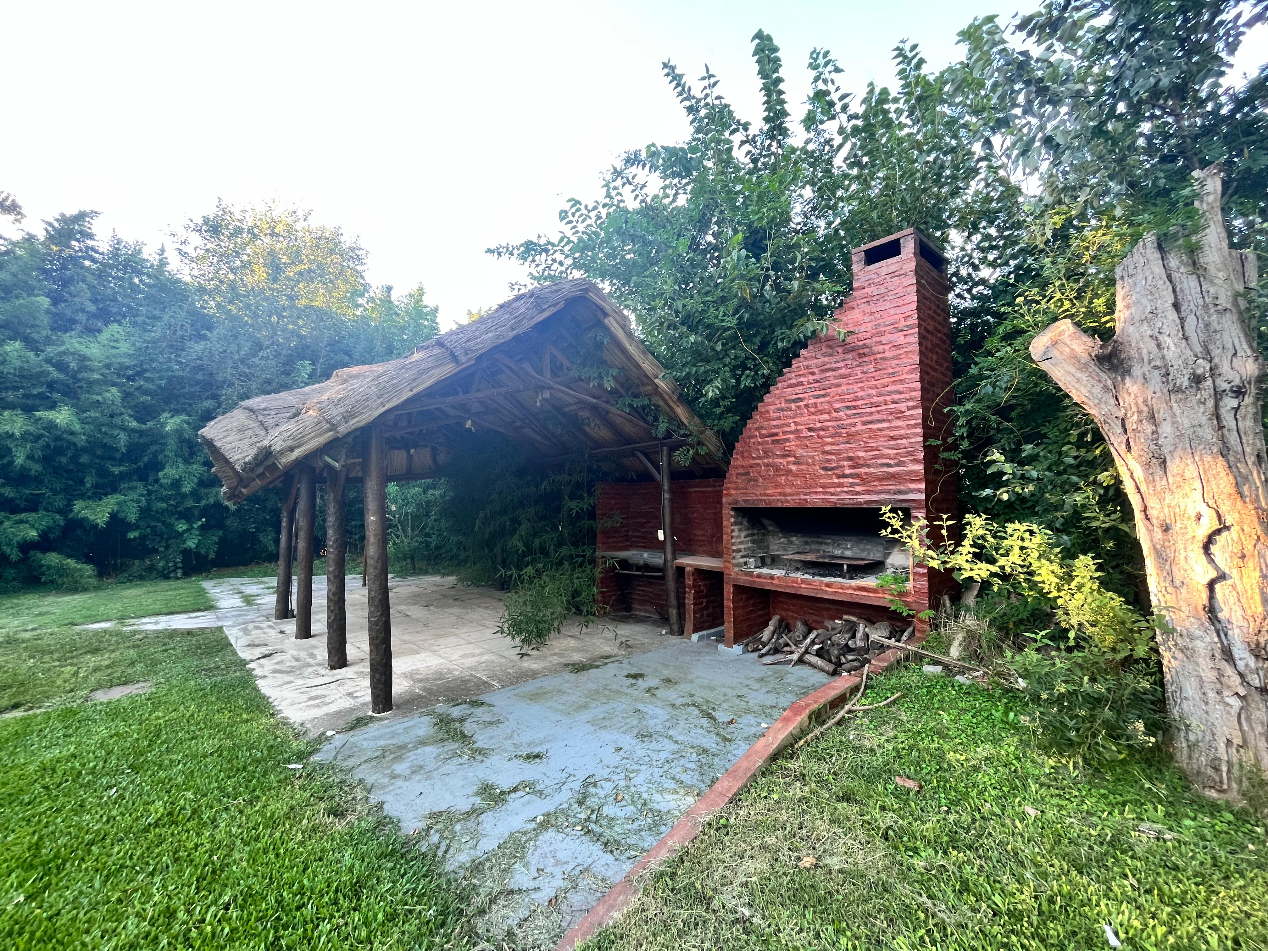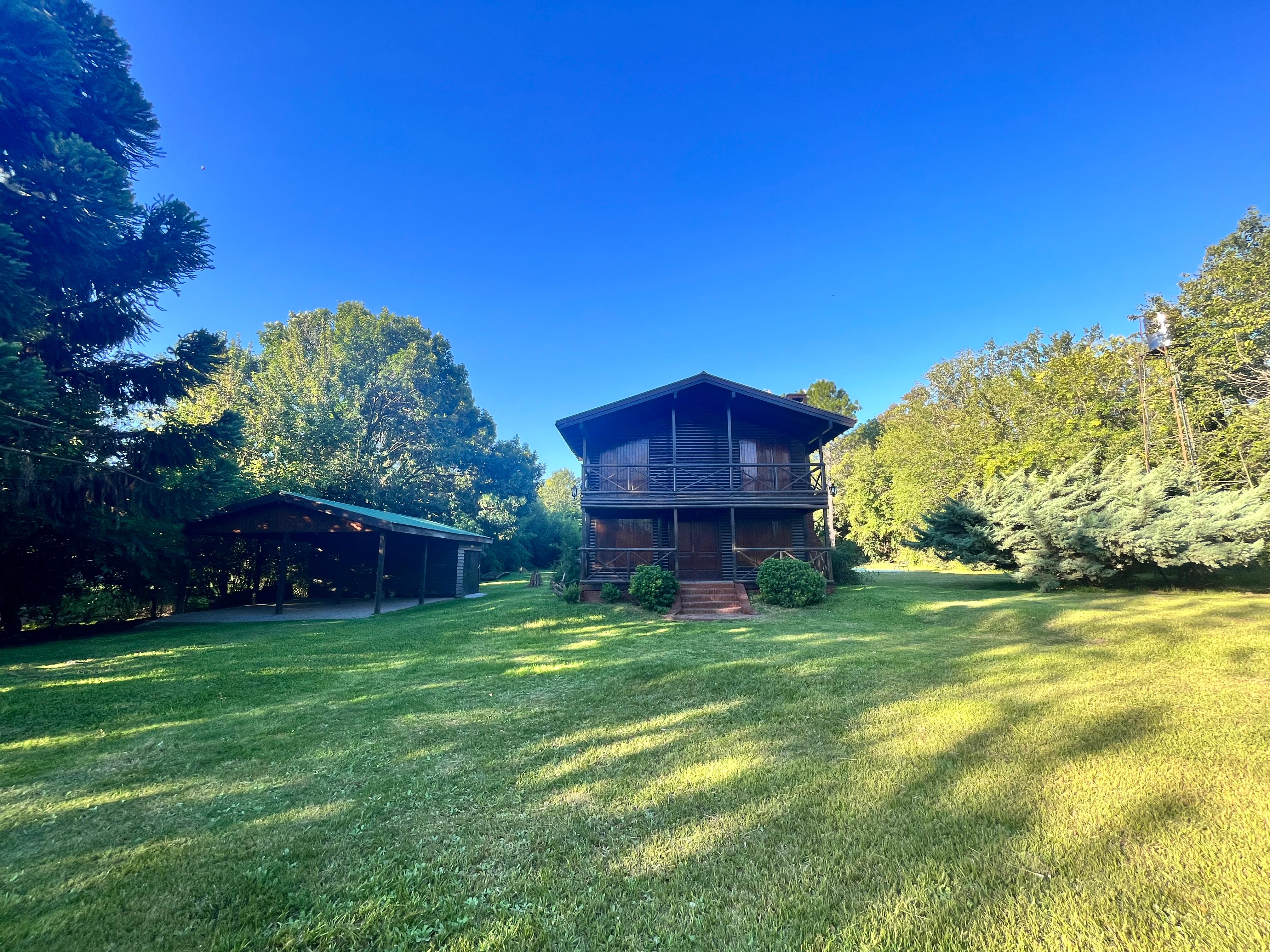 La cabaña está totalmente desarrollada en madera. Galería techada. Pileta plástica con bomba y filtro, y solárium. Quincho rústico con techo de paja, solárium, mesada con grifería y parrilla. Pérgola de madera con techo de chapa, luz y toma corriente, para guarda de 2 vehículos. Adherido a la cochera, un cuarto de herramientas.