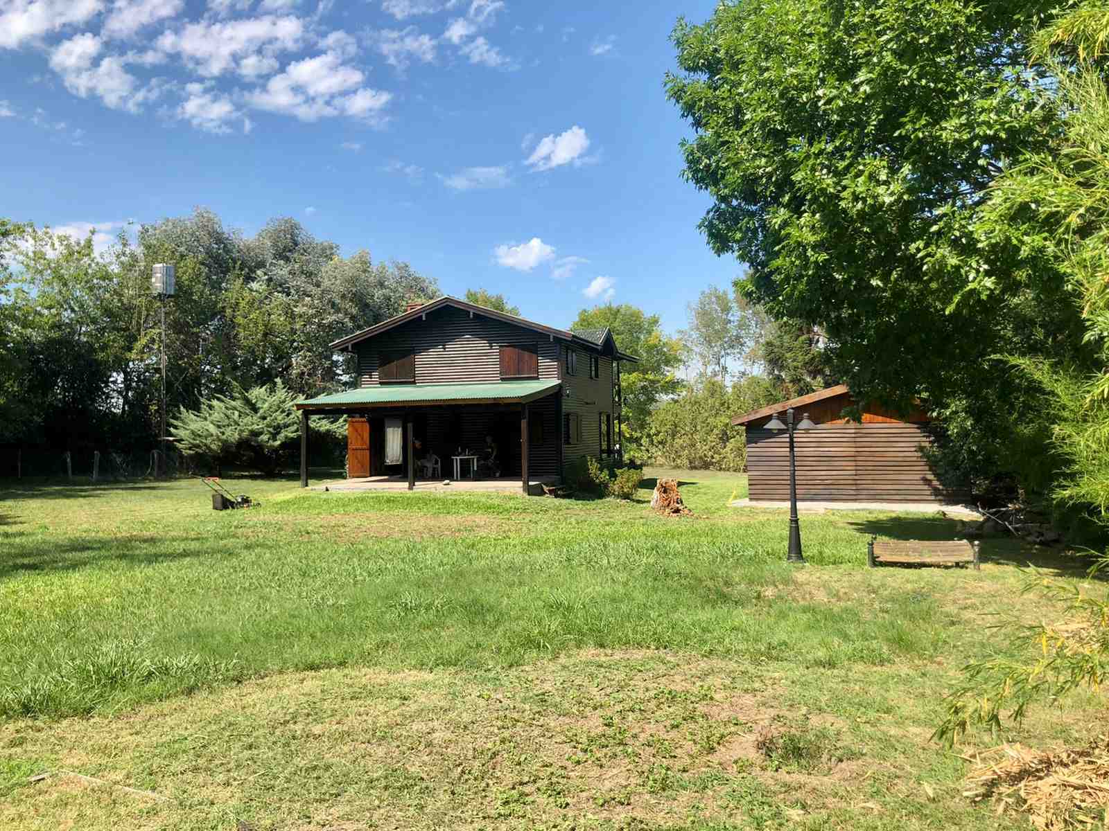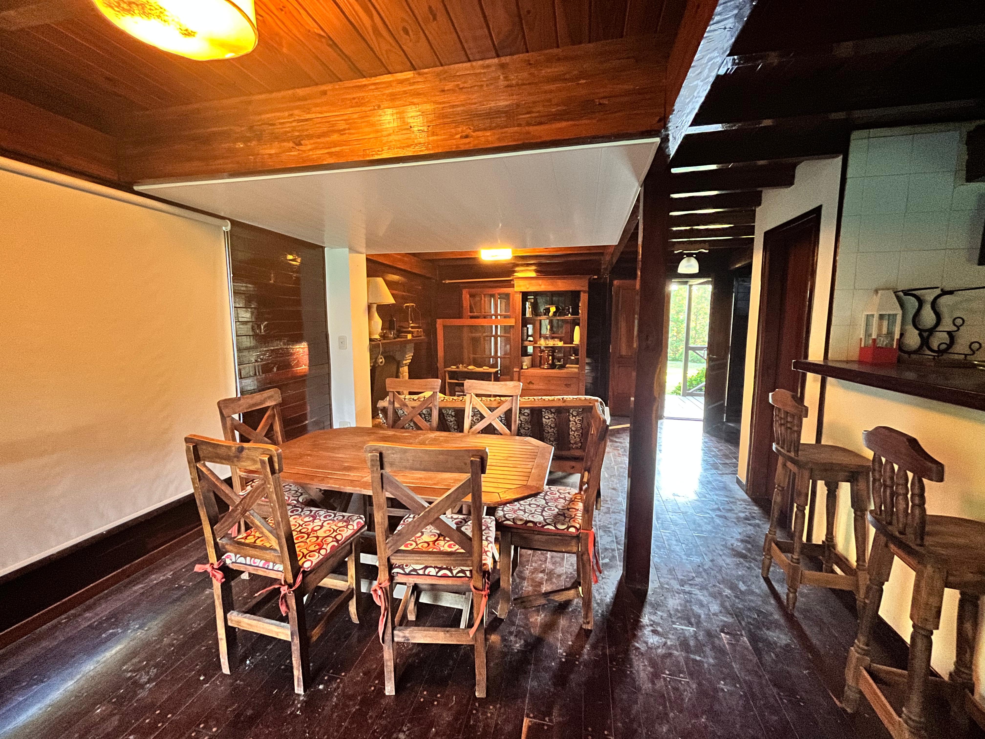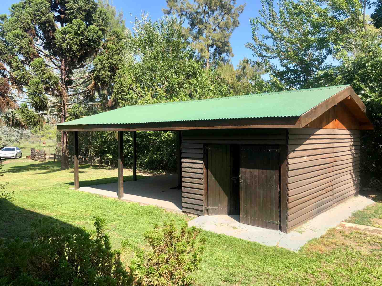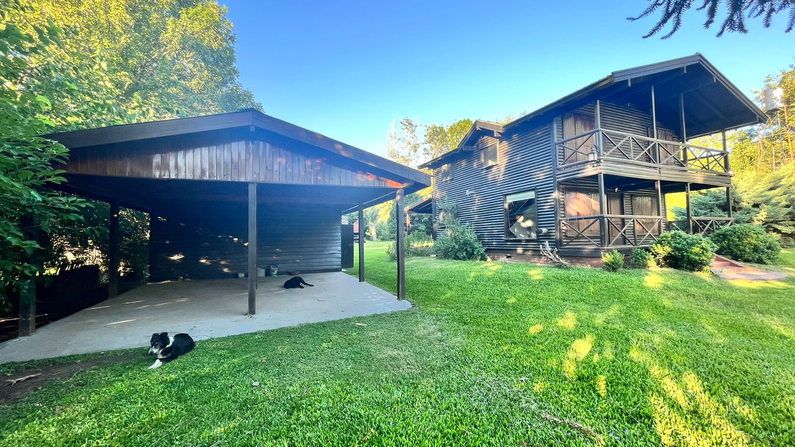 La cabaña está totalmente desarrollada en madera. Galería techada. Pileta plástica con bomba y filtro, y solárium. Quincho rústico con techo de paja, solárium, mesada con grifería y parrilla. Pérgola de madera con techo de chapa, luz y toma corriente, para guarda de 2 vehículos. Adherido a la cochera, un cuarto de herramientas.