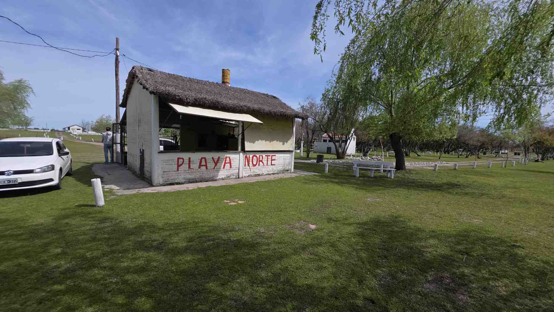 Tiene 350 mtrs de costa, divida en zona de pescadores y playa habilitada con guardavidas para la recreación y el disfrute. En su ingreso veremos una construcción de 100 m2 cubiertos que oficia de casa de caseros y portería sobre un camino firme que da acceso al Balneario Camping, siguiendo por una hermosa arboleda, parrillas, mesas, espacio para casas rodantes, carpas, vestuarios con duchas y baños cancha de fútbol y cancha de Voley.