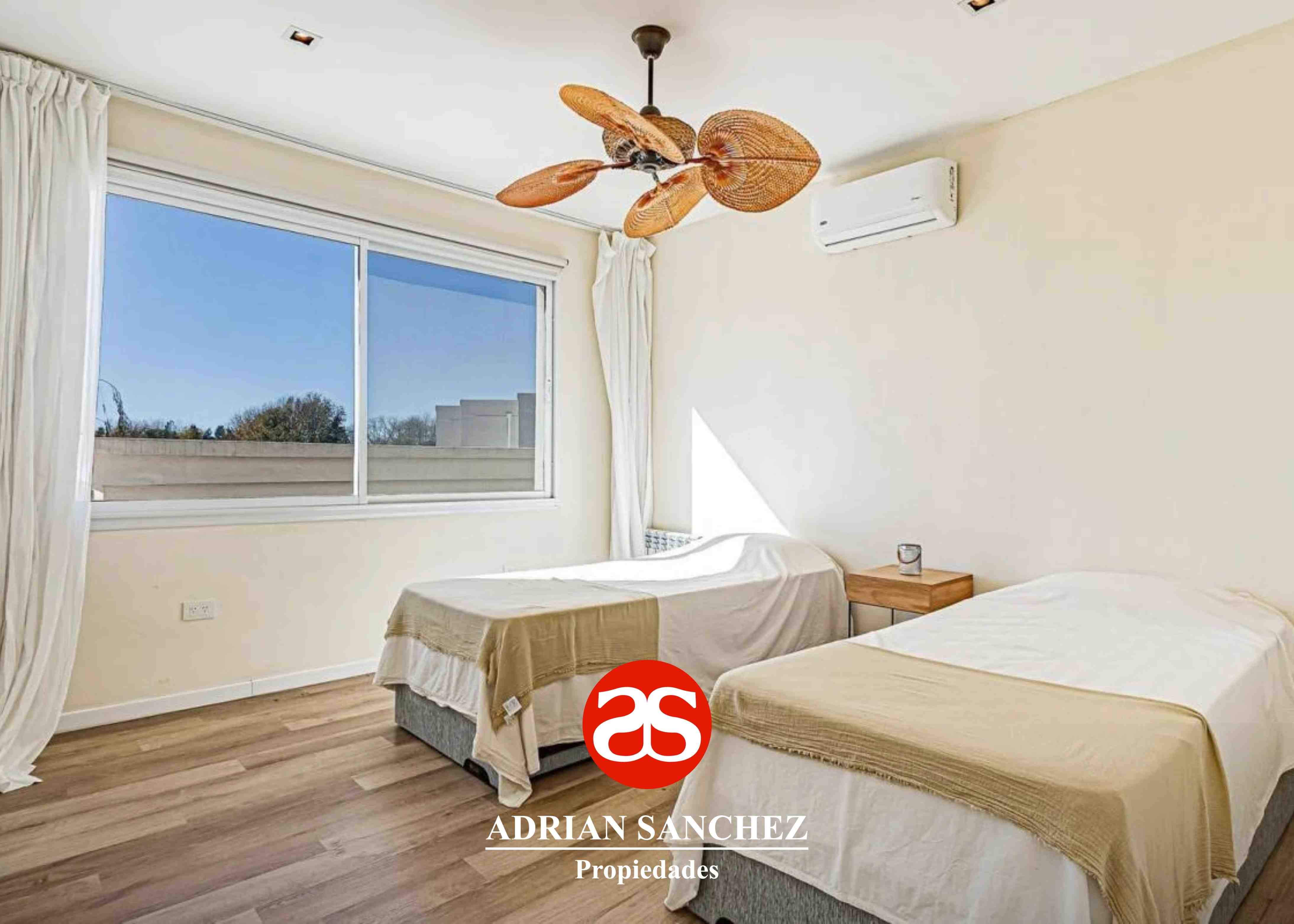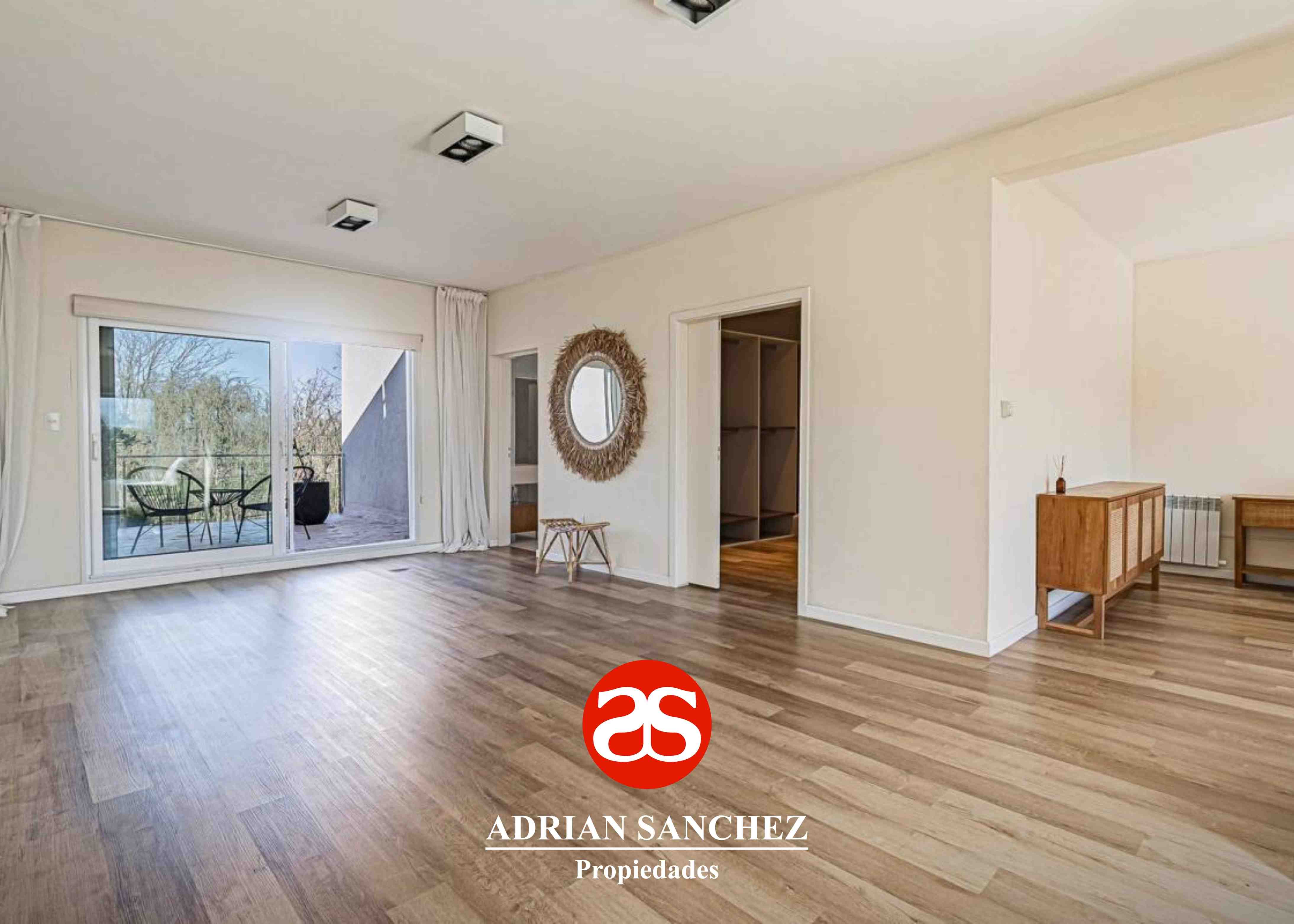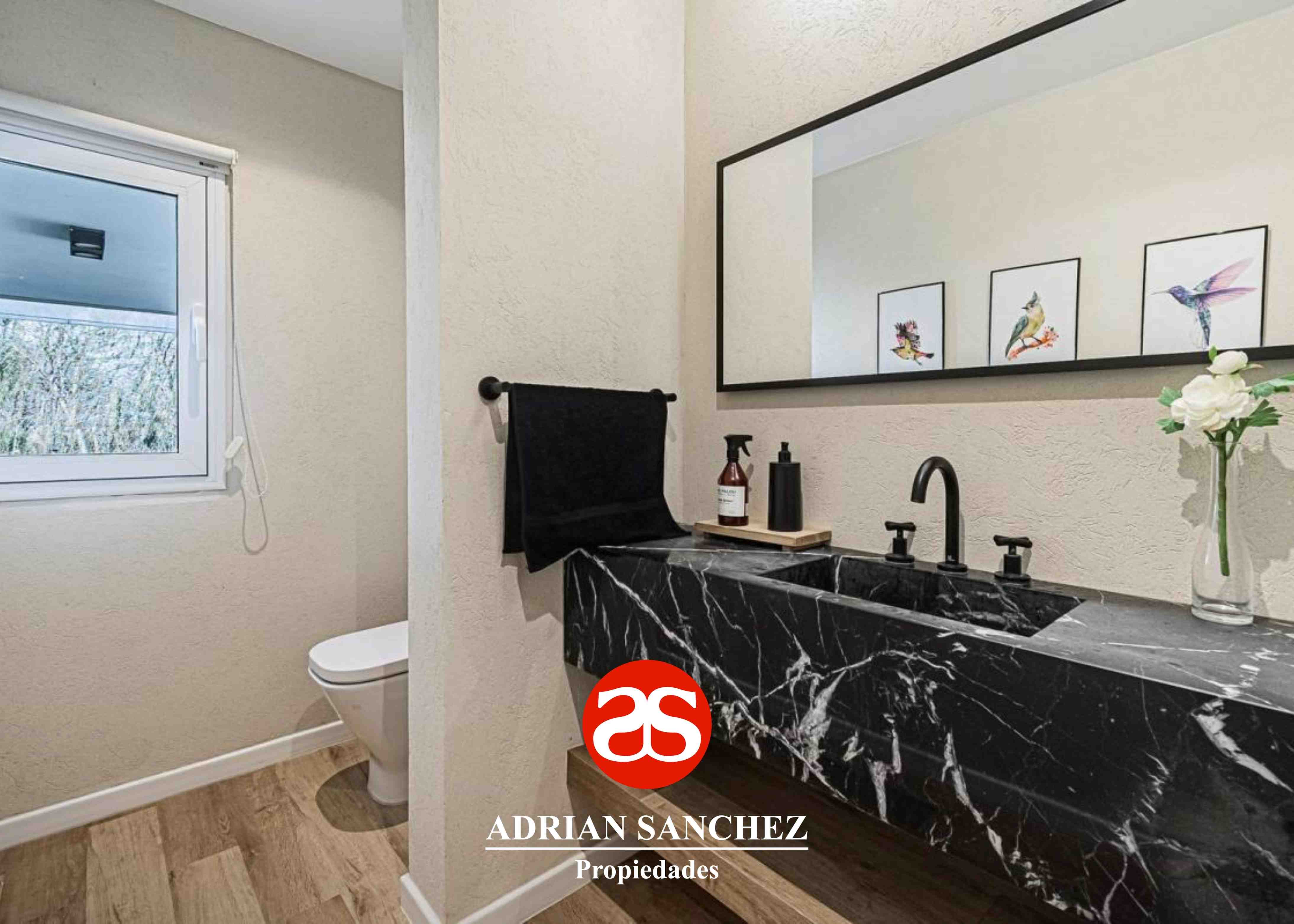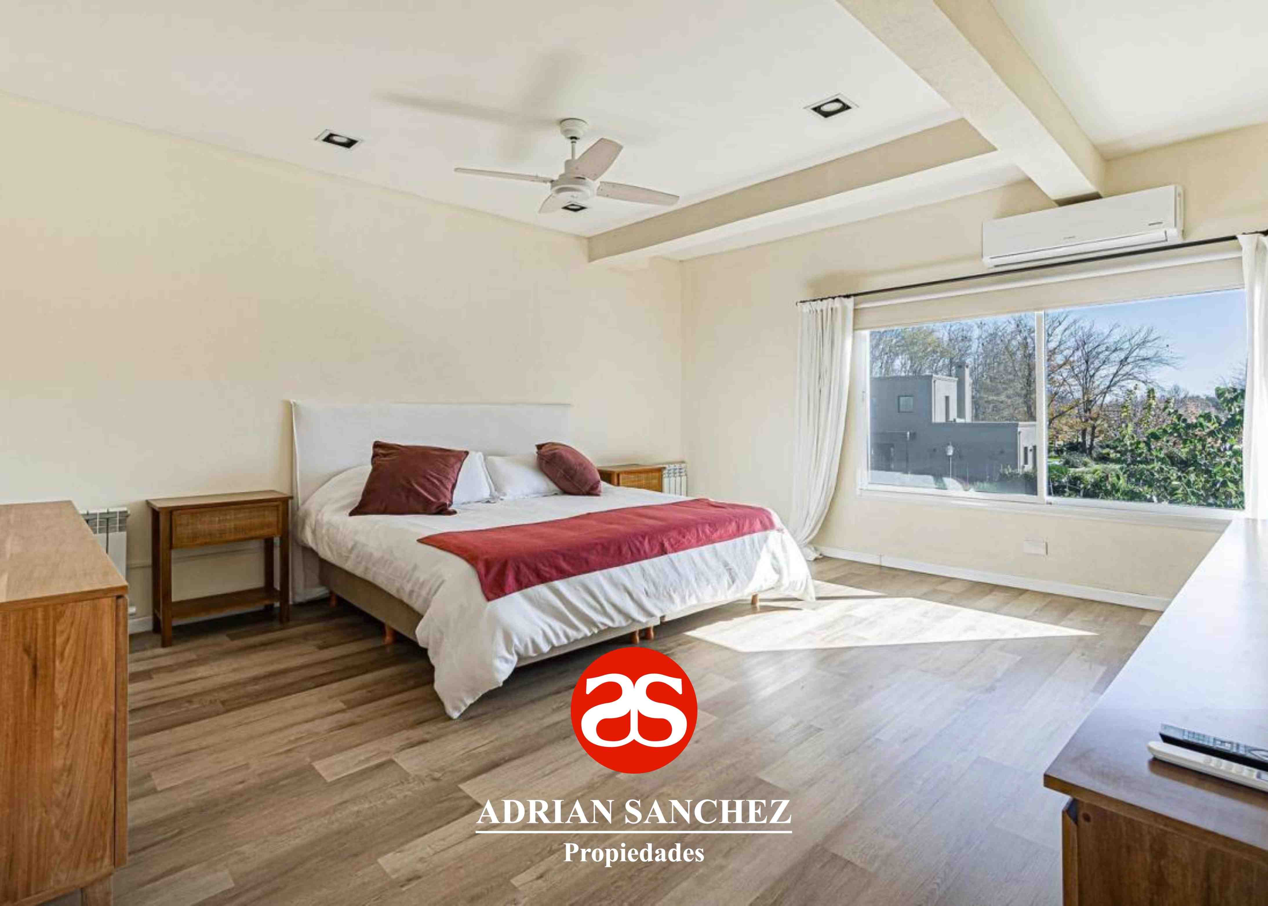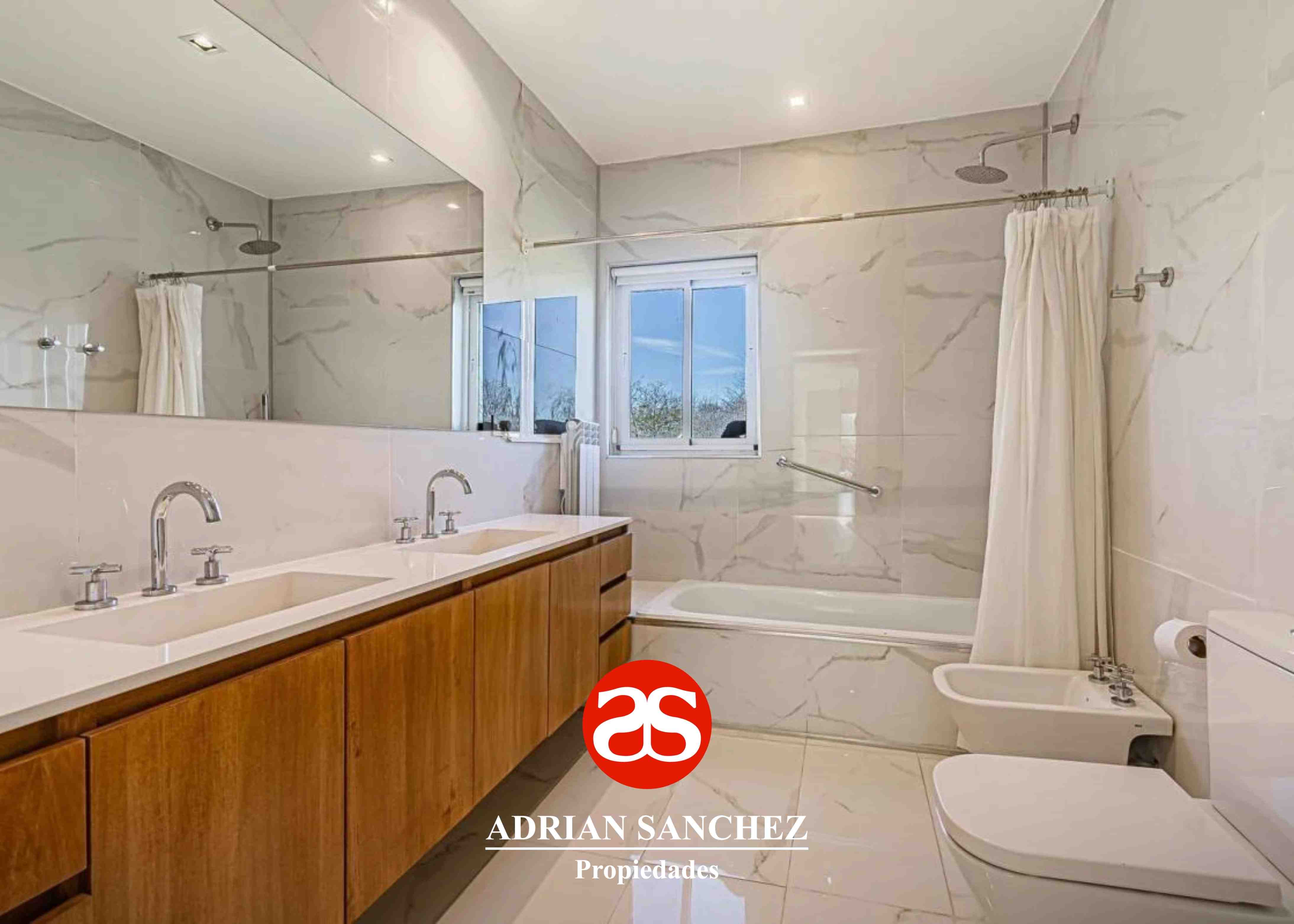 - Planta Baja: amplio living-comedor con hogar a leña, toilette de recepción, cocina completa con comedor diario, lavadero independiente, baño de servicio y dormitorio en suite. Garage cubierto para 2 vehículos.