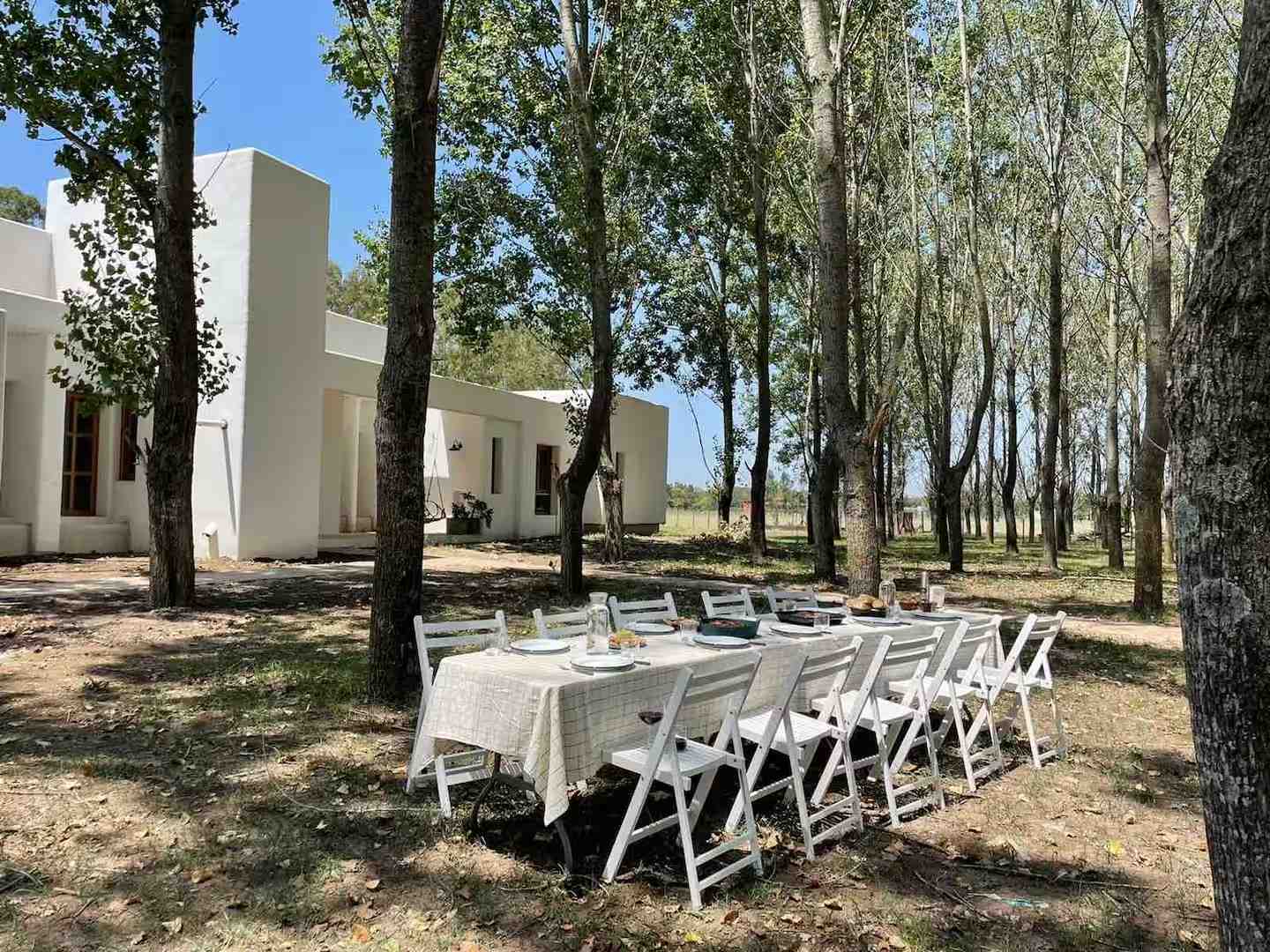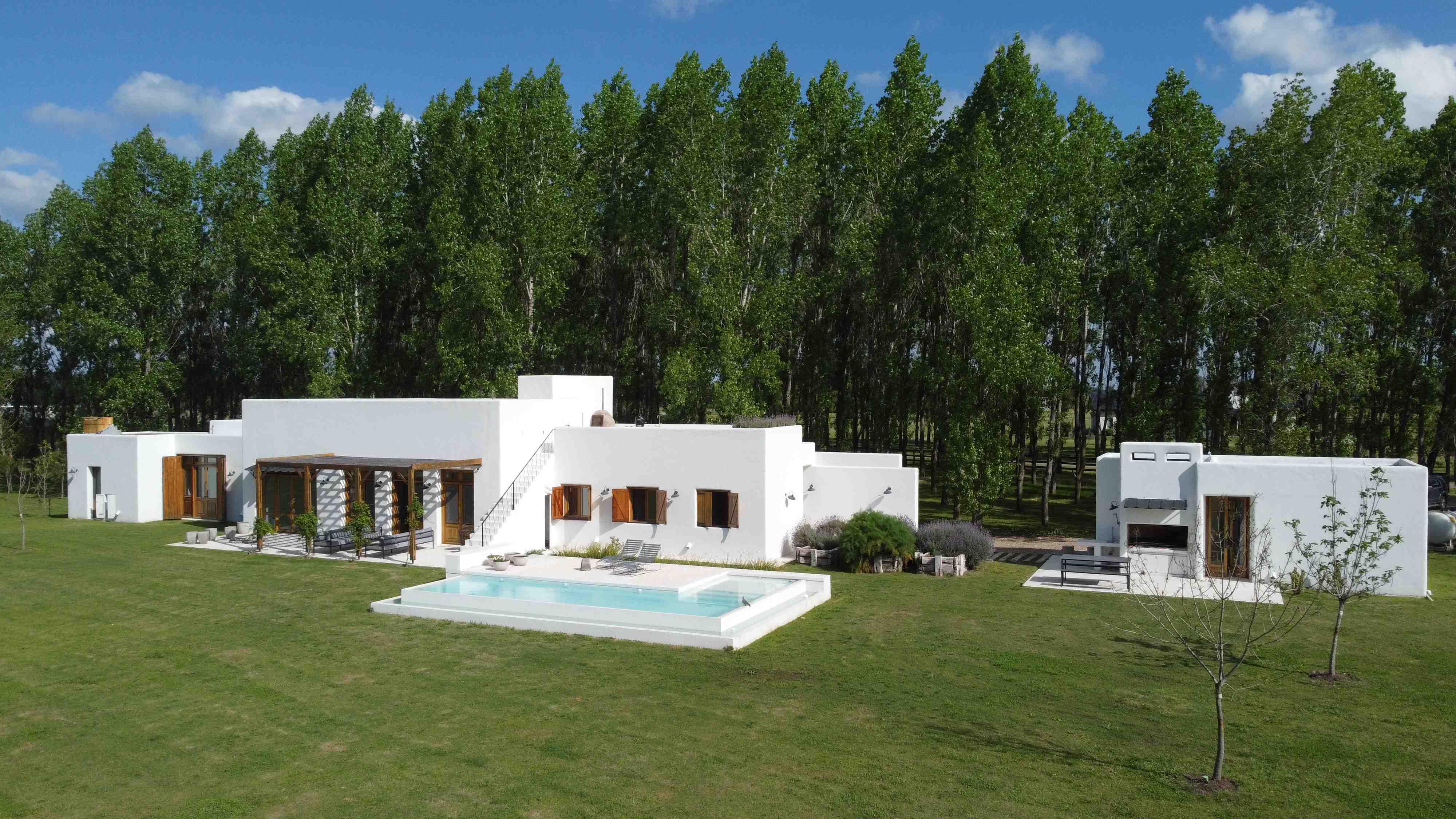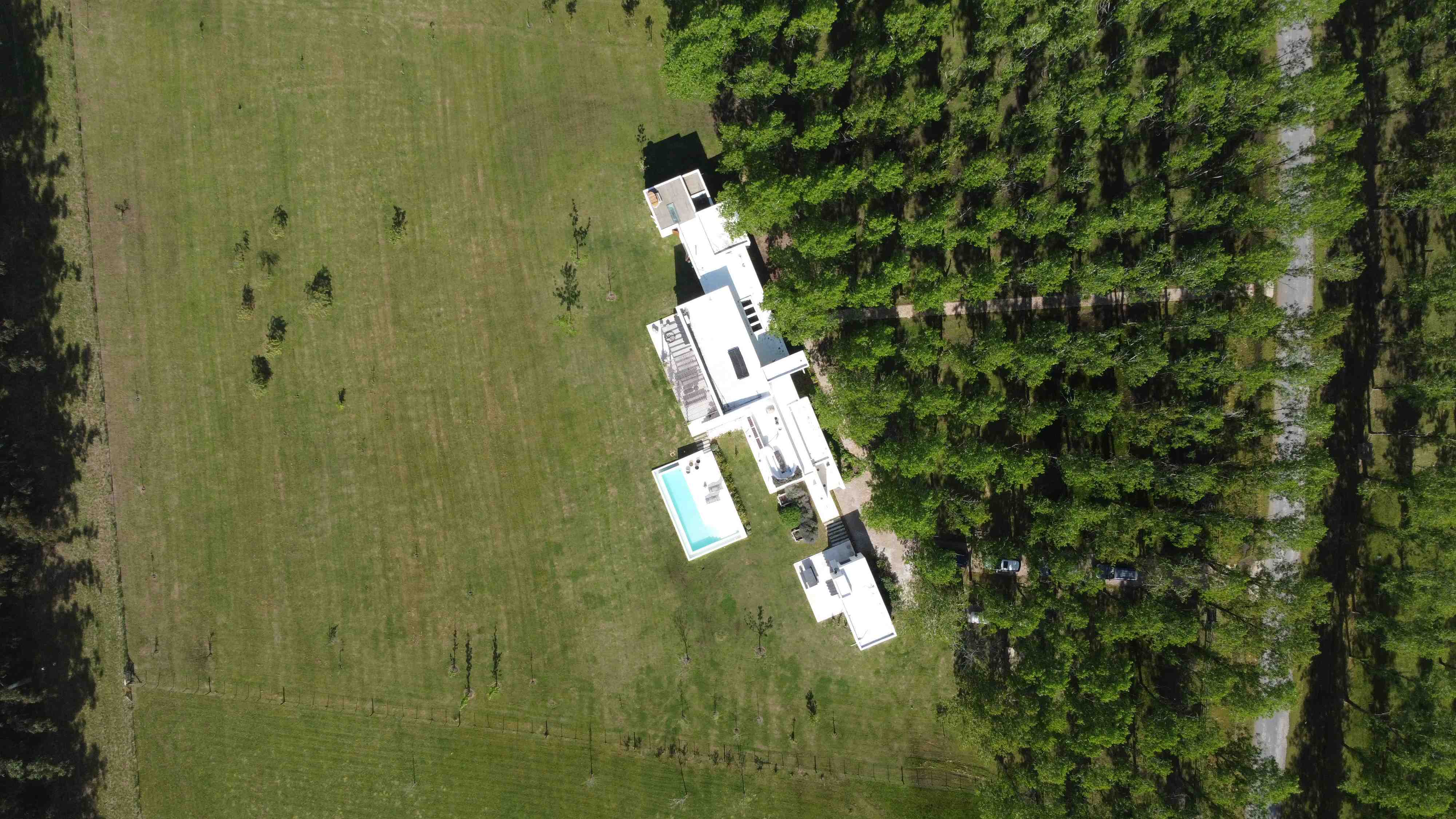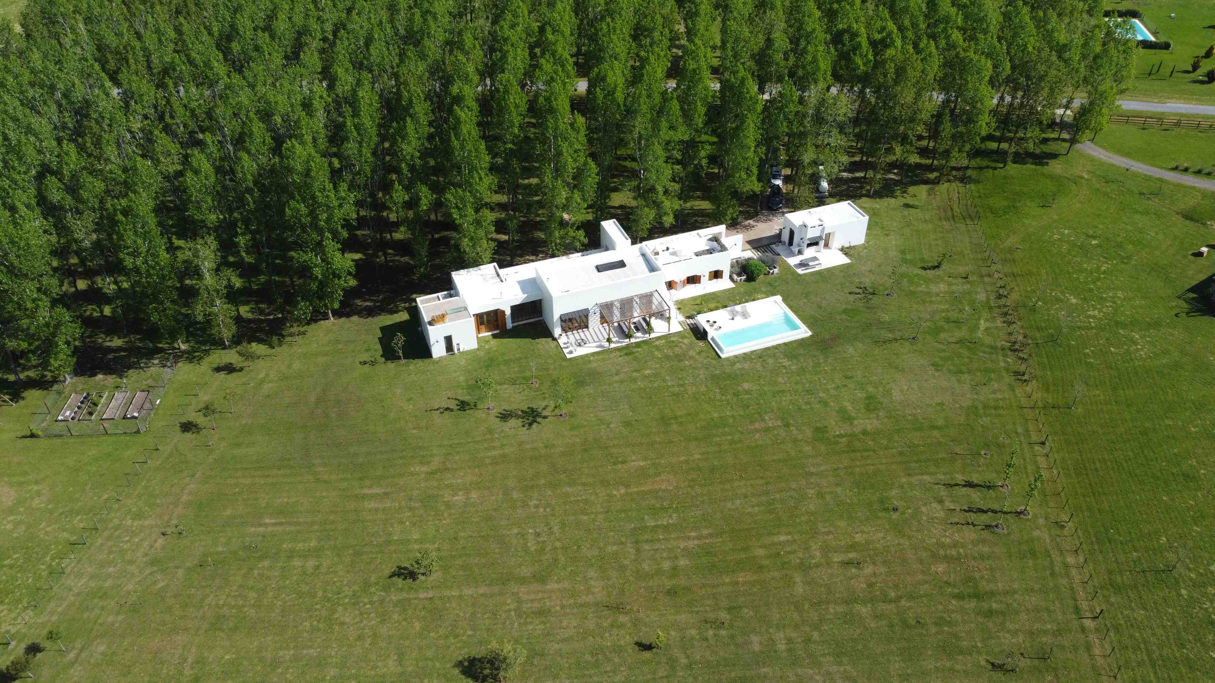 El terreno de 10.000 metros cuadrados está rodeado por un bosque privado de álamos, lo que brinda sombra y un entorno natural. El diseño arquitectónico permite vistas verdes desde todos los ambientes.