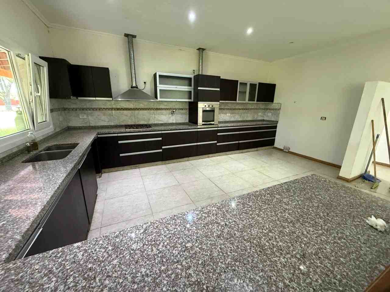 Cuenta con lavadero cerca de la cocina, toilette y este tiene salida a una galería semicubierta, en el cual se encuentra la parrilla con una vista privilegiada al parque y pileta de natación de 5 mtrs x 13 mtrs, con todos sus filtros.