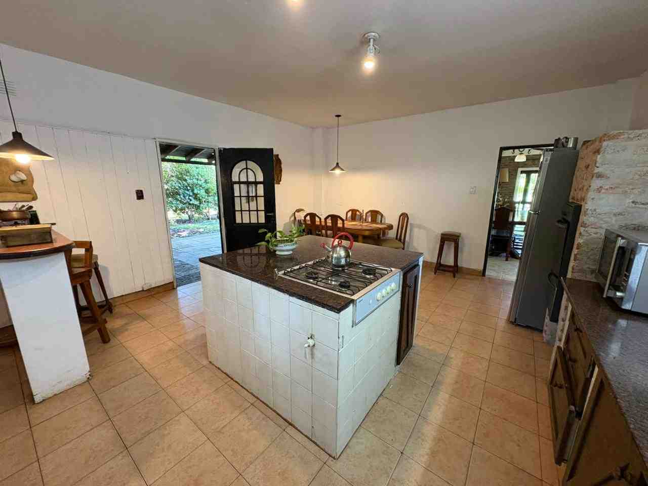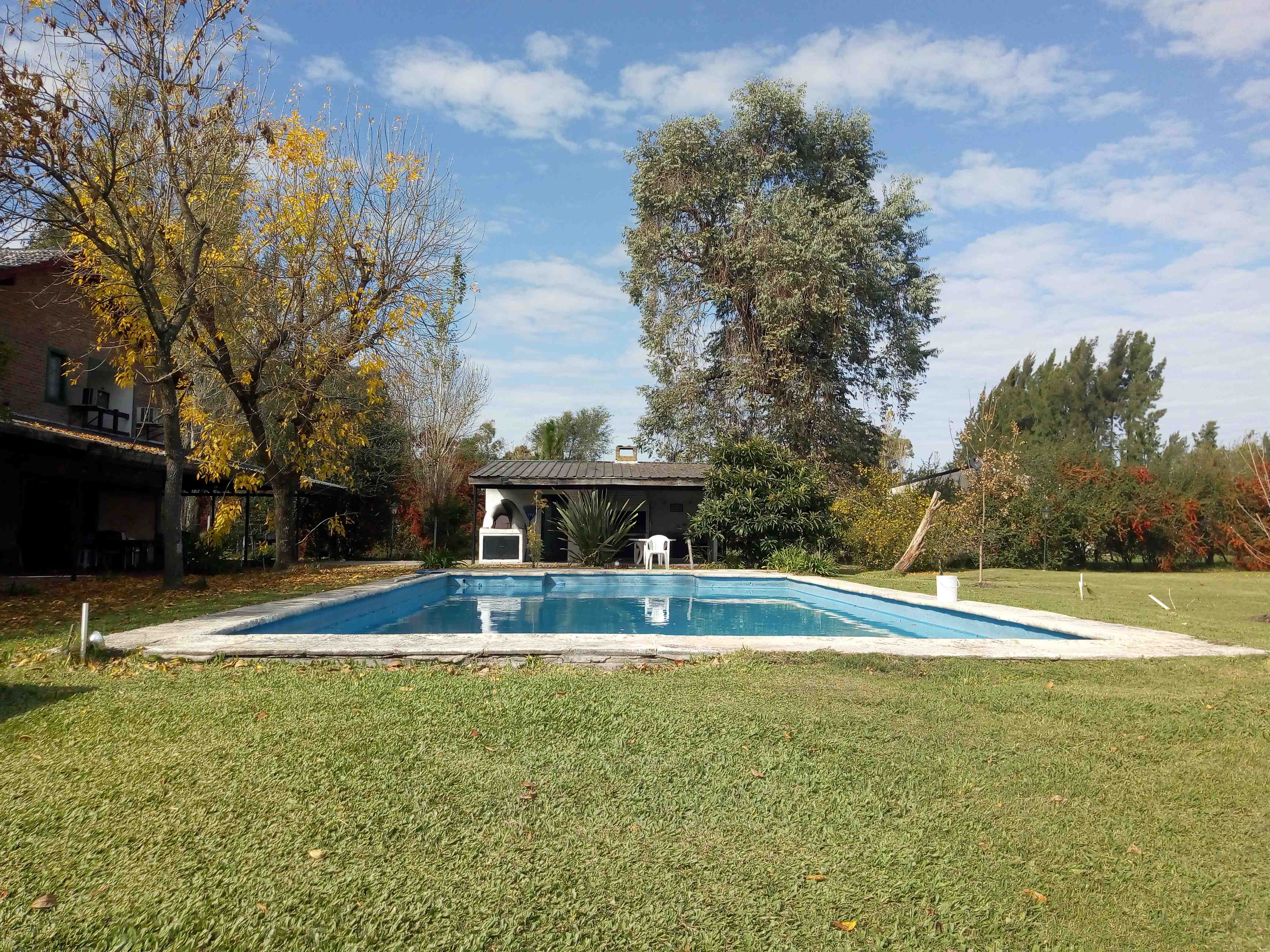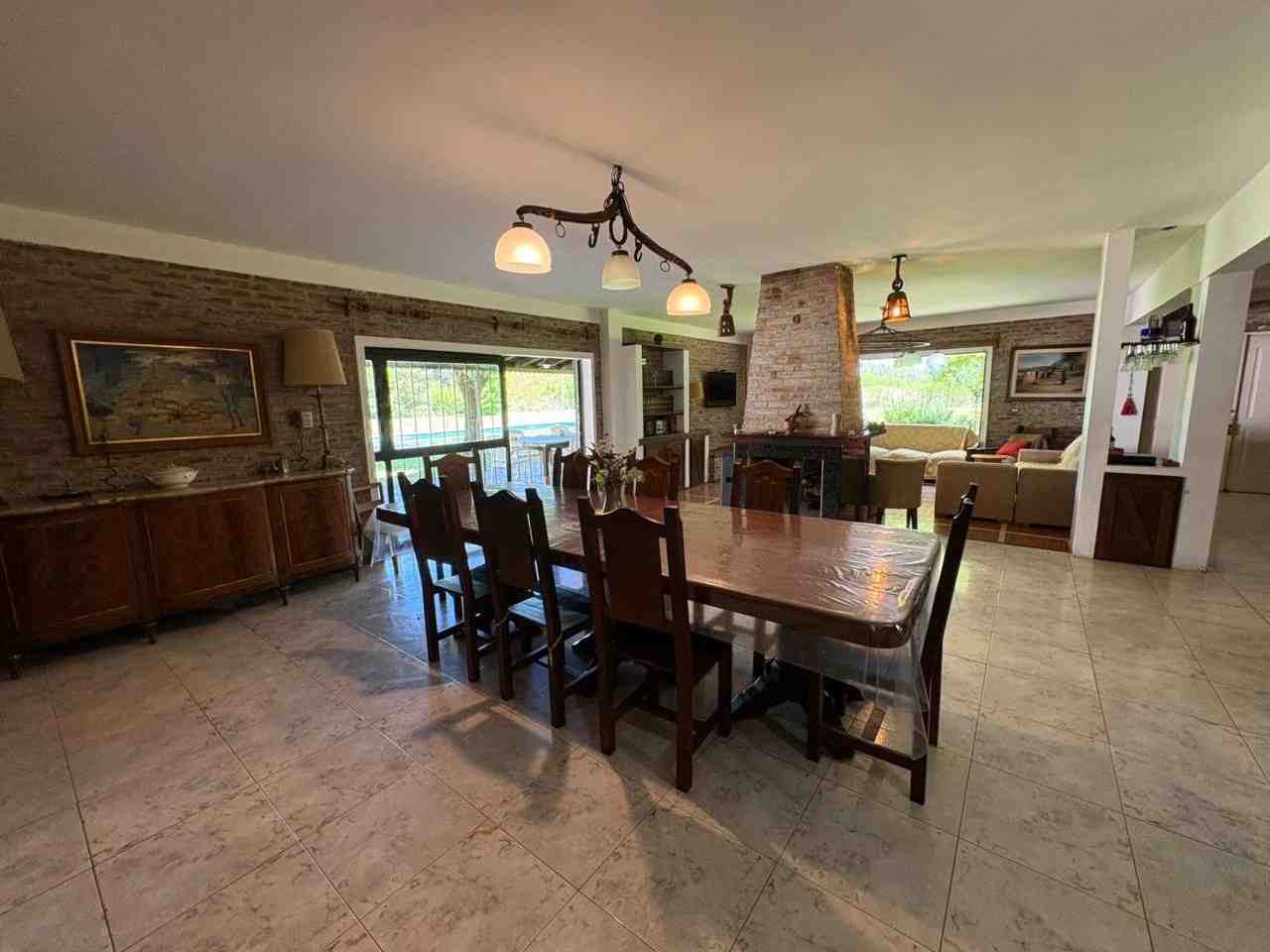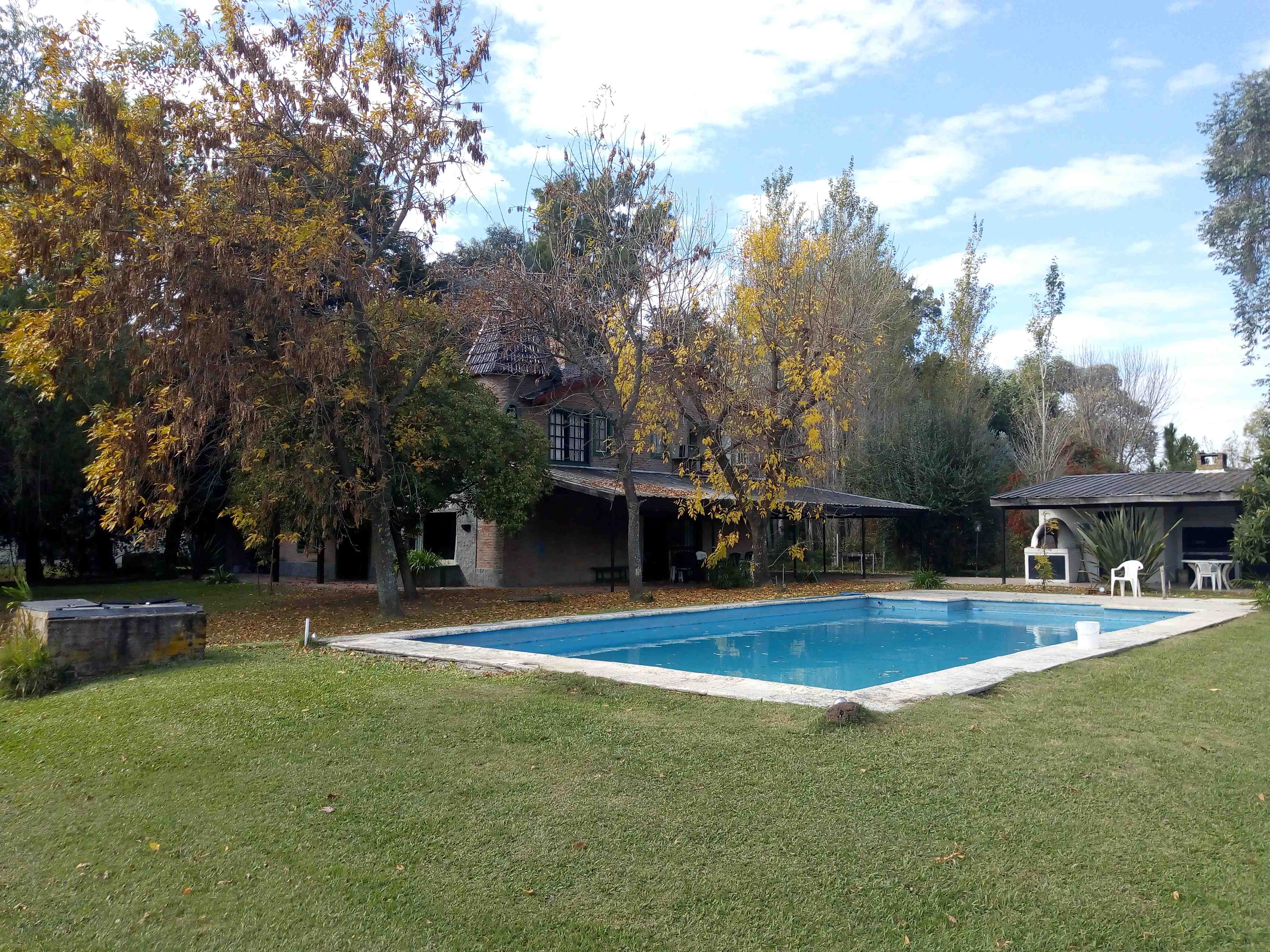 Casa con 4 dormitorios (master suite: Amplio dormitorio de 8 x 4, balcón con vista al campo, baño compartimentado, bañadera con Yacuzzi, amplio vestidor y hogar a leña), 3 baños completos, escritorio, living, comedor, lavadero (pileta de lavar, termotanque y Bomba presurizadora de ¾ CV que da presión a todas las salidas de agua de la casa), cocina (horno empotrado, isla en el centro con anafe x 4 hornallas, breackfast, luz de emergencia para casos de corte de luz), taller y garage para dos autos. Gran galería en L de 28 mts. de largo por 5 mts. de ancho y 2,80 m. de alto. Prolongación del living y bisagra con el área pileta.