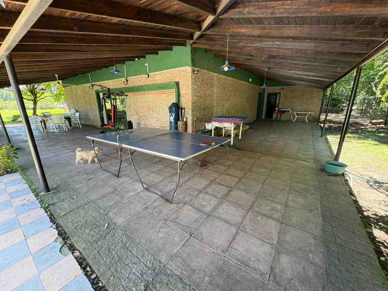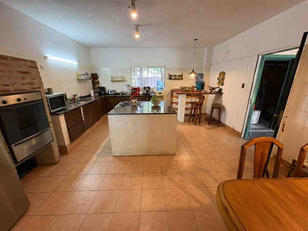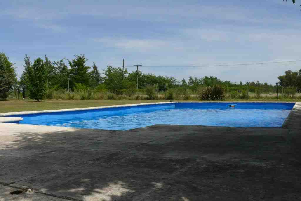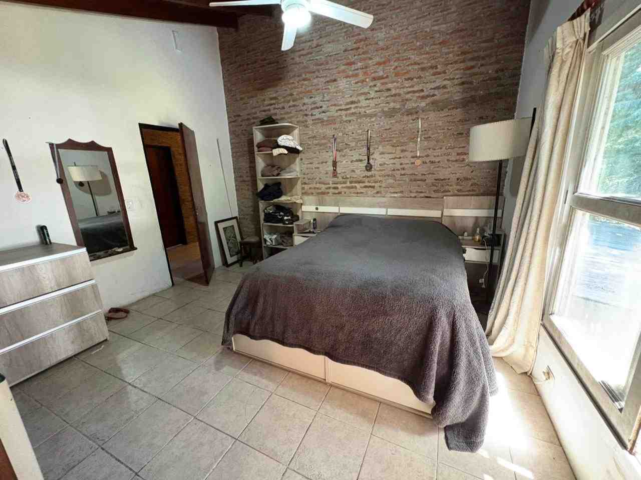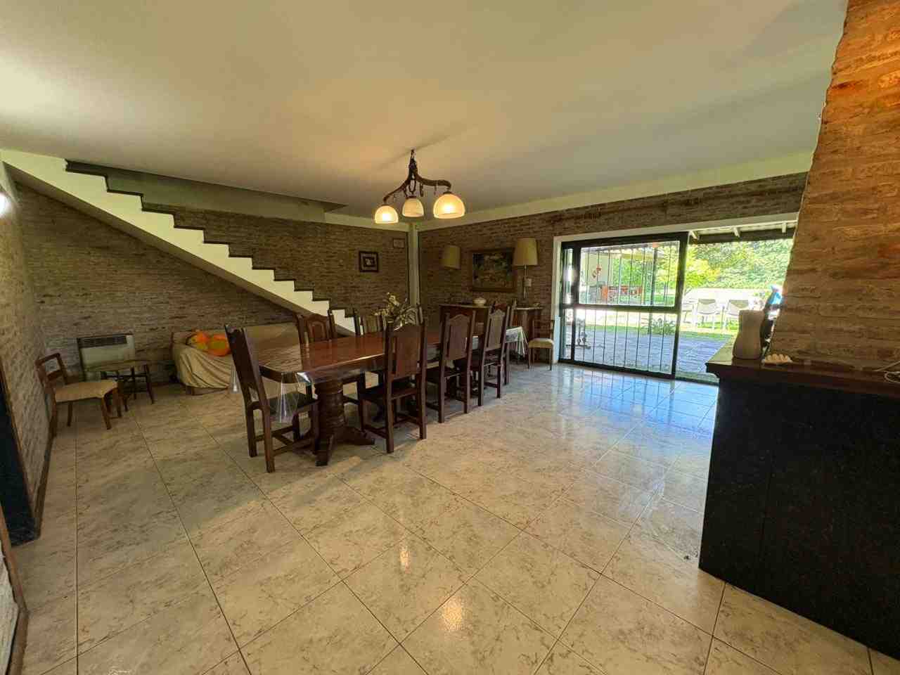 Casa con 4 dormitorios (master suite: Amplio dormitorio de 8 x 4, balcón con vista al campo, baño compartimentado, bañadera con Yacuzzi, amplio vestidor y hogar a leña), 3 baños completos, escritorio, living, comedor, lavadero (pileta de lavar, termotanque y Bomba presurizadora de ¾ CV que da presión a todas las salidas de agua de la casa), cocina (horno empotrado, isla en el centro con anafe x 4 hornallas, breackfast, luz de emergencia para casos de corte de luz), taller y garage para dos autos. Gran galería en L de 28 mts. de largo por 5 mts. de ancho y 2,80 m. de alto. Prolongación del living y bisagra con el área pileta.