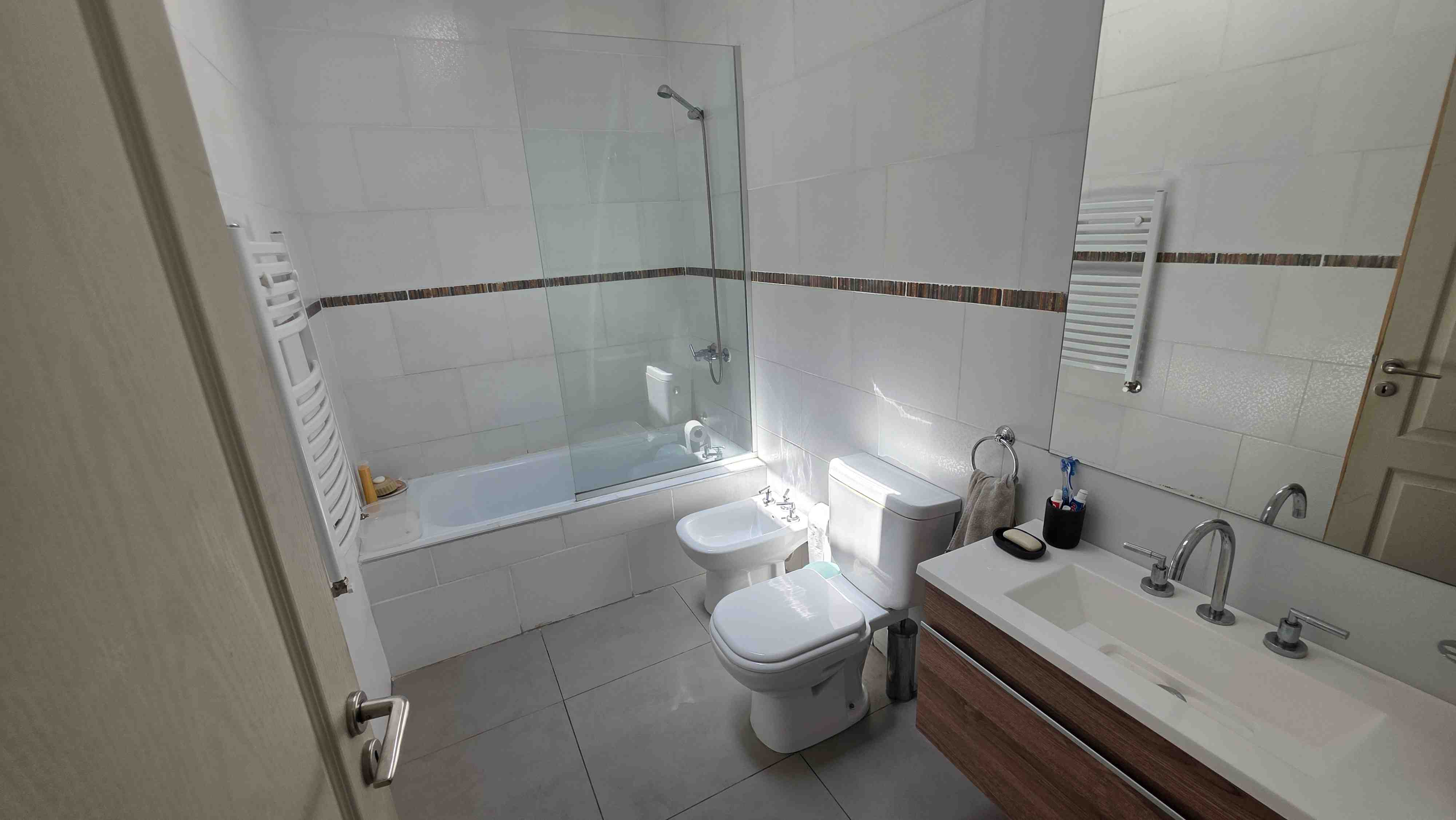 - Tres dormitorios, uno en suite con vestidor, baño completo compartido, placares, AA/CC, en los ambientes.