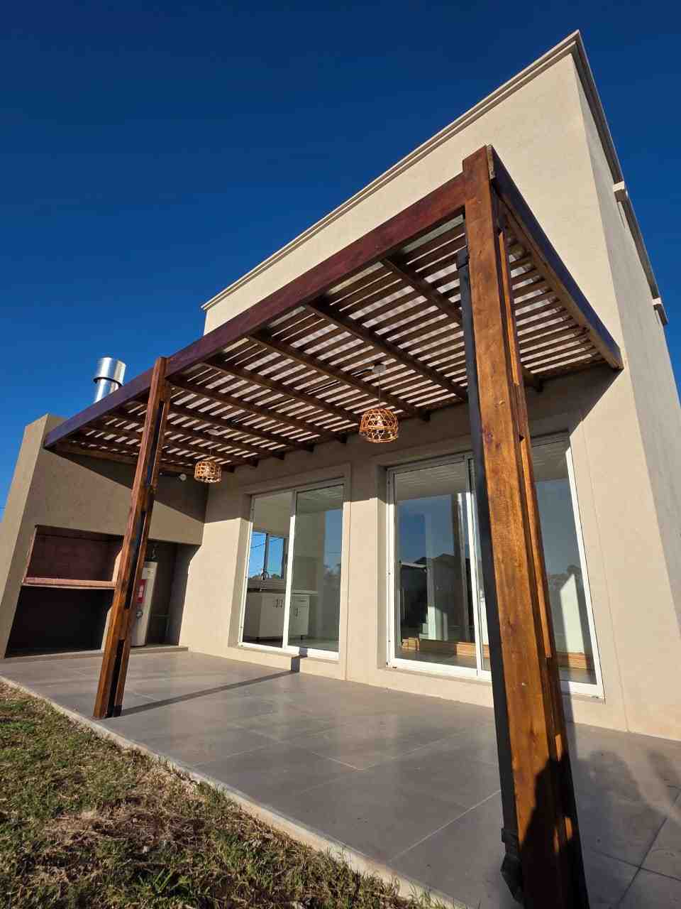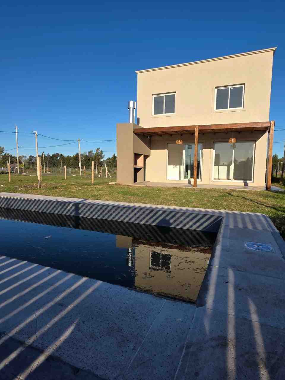 • Dos plantas, 4 dormitorios, cocina comedor integrada, 1 baño completo con ante baño, 1 toilette en la planta baja, galería con pérgola, piscina revestida en cerámicos con bomba y equipo de filtrado completo. Parrilla.