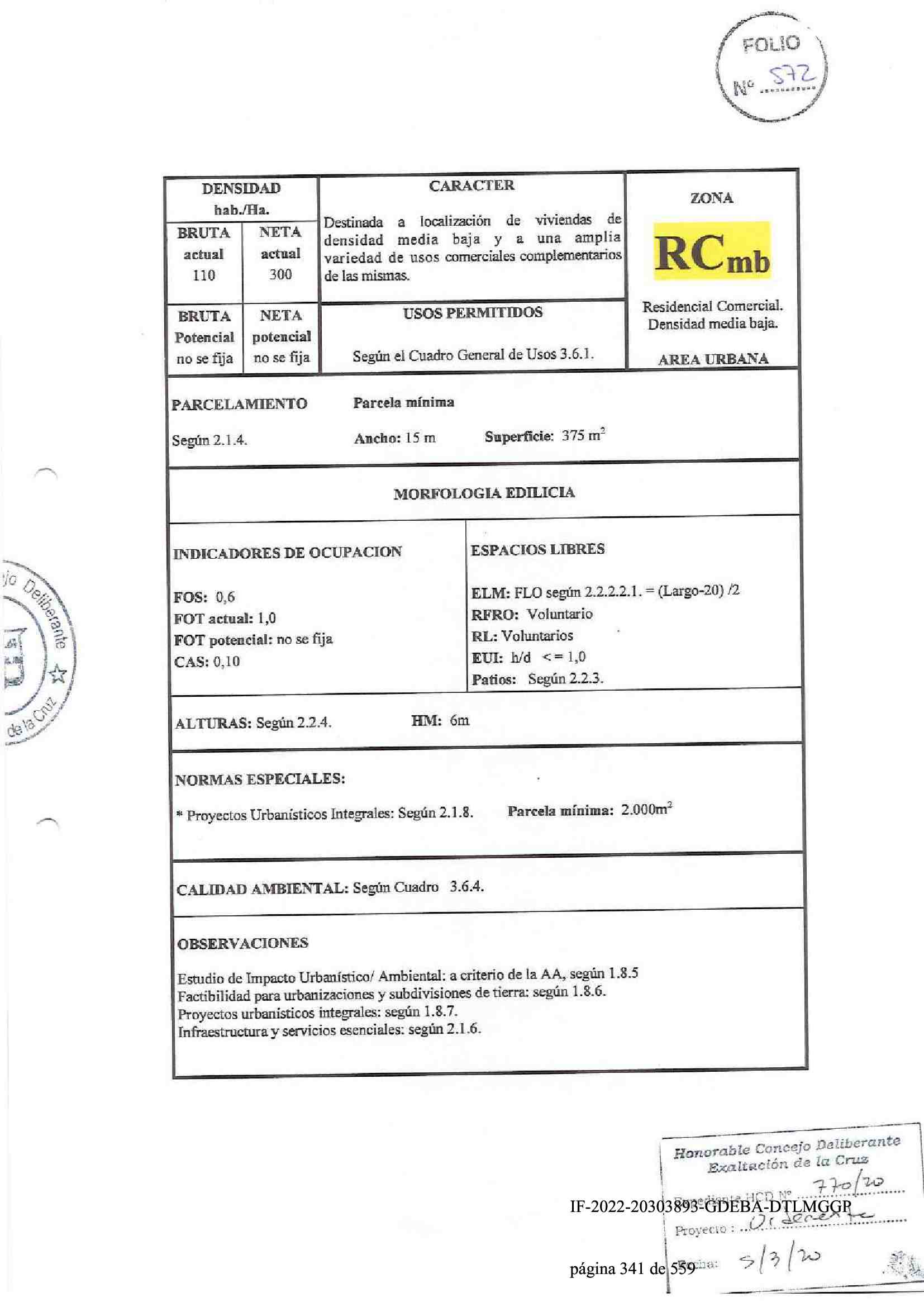 Zonificación: RCmb – Residencial Comercial Densidad media baja.