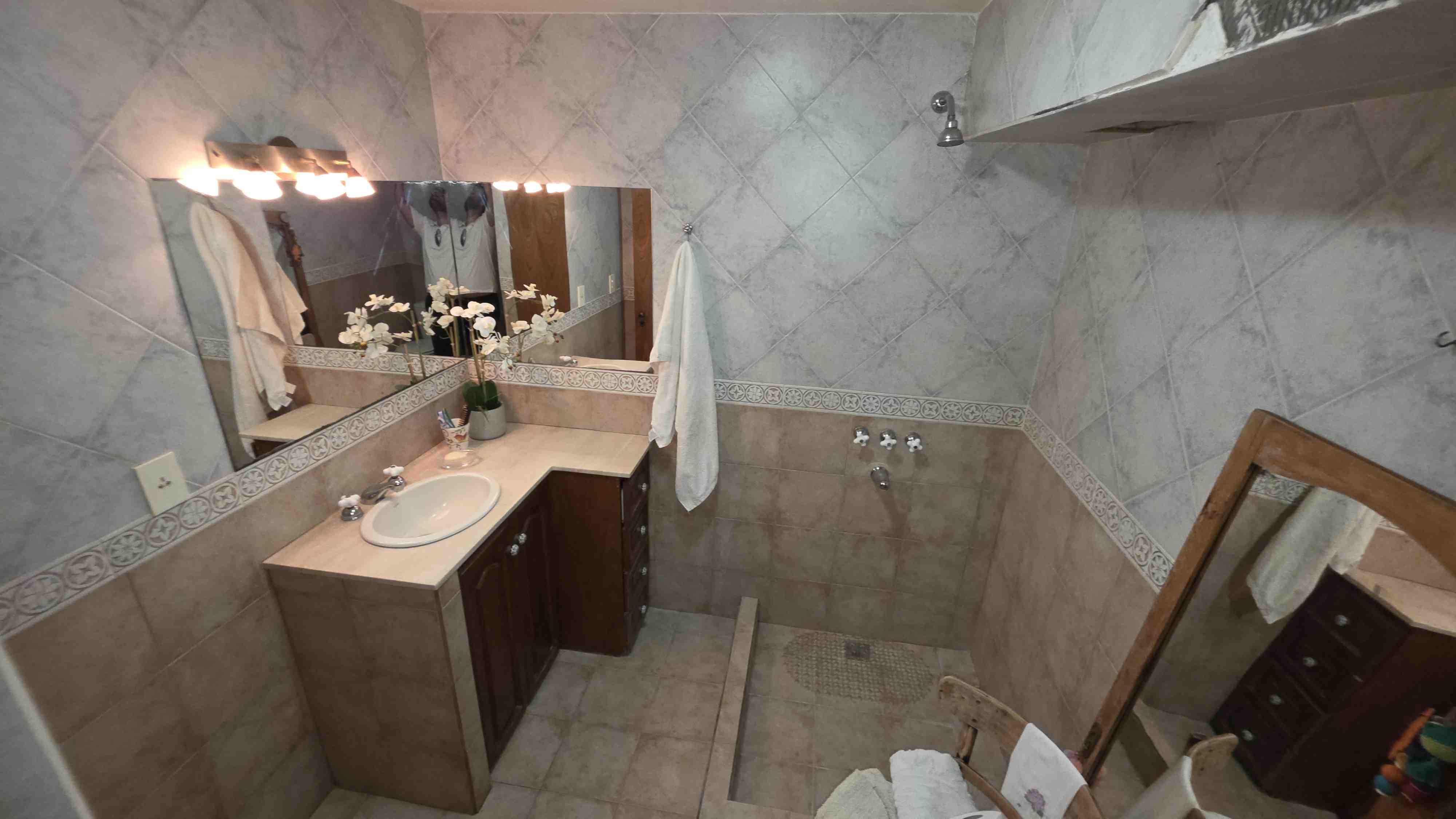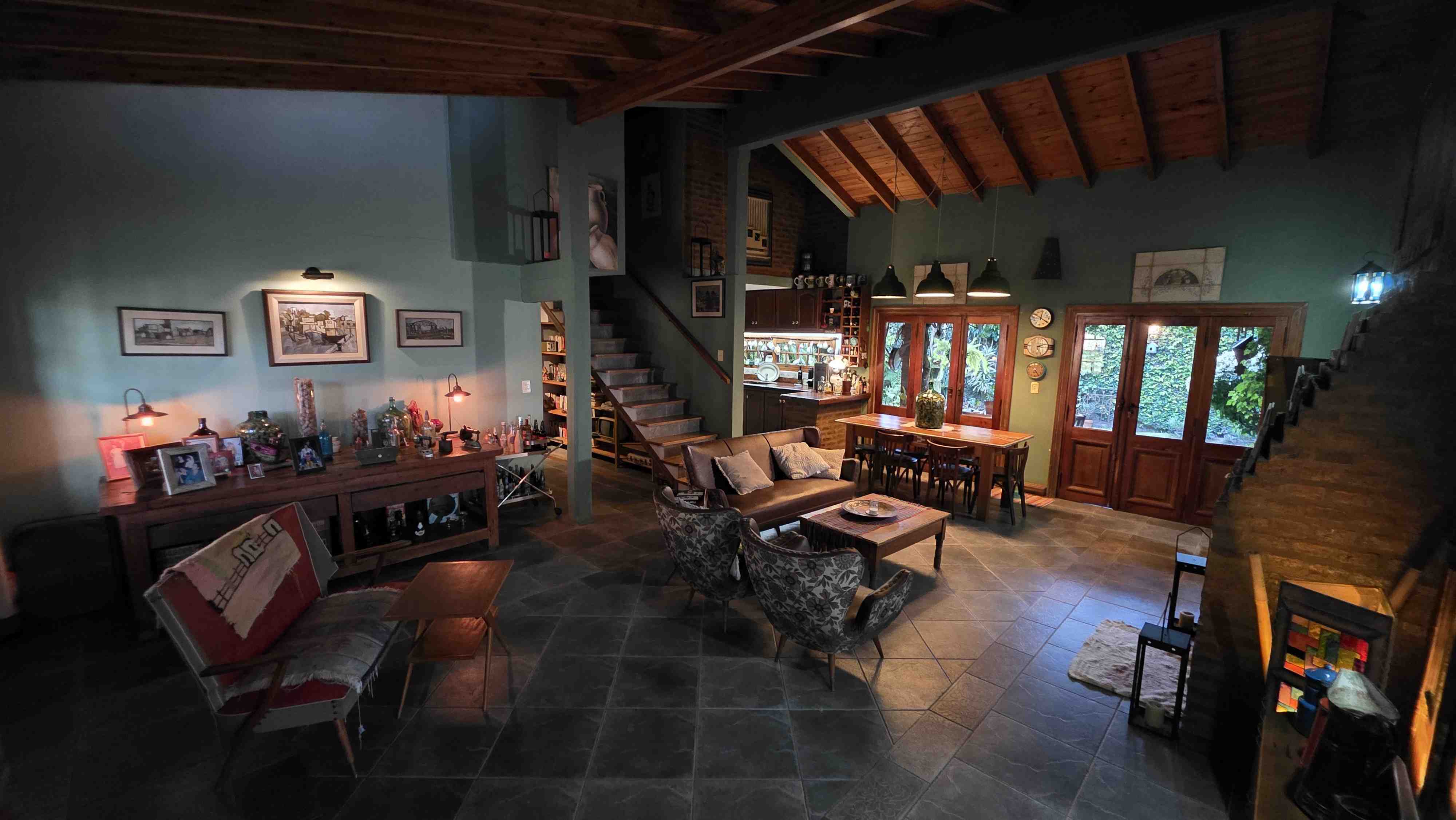 P. A.: un dormitorio en suite c/vestidor, depósito, baño. Todas las aberturas son de madera de primera calidad, como así también toda la madera utilizada para el techo, portón de entrada para auto y puerta lateral.