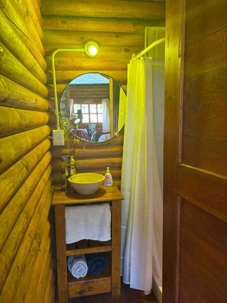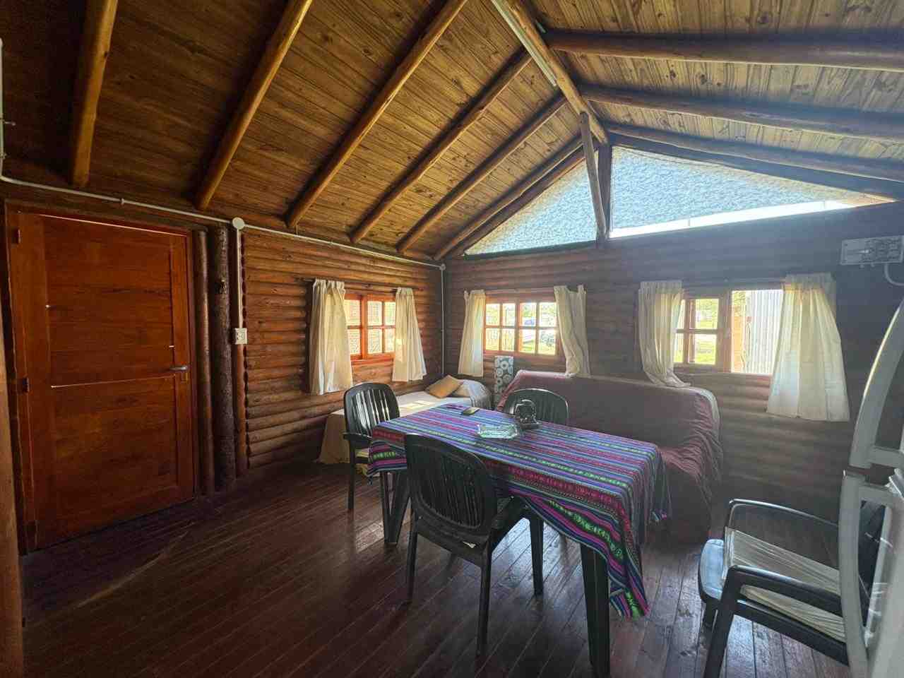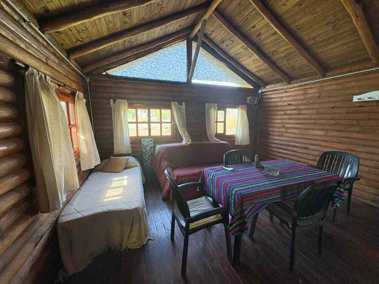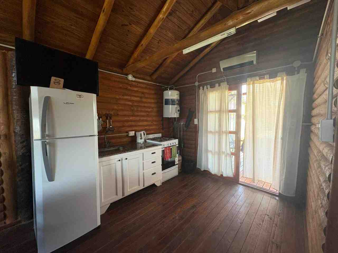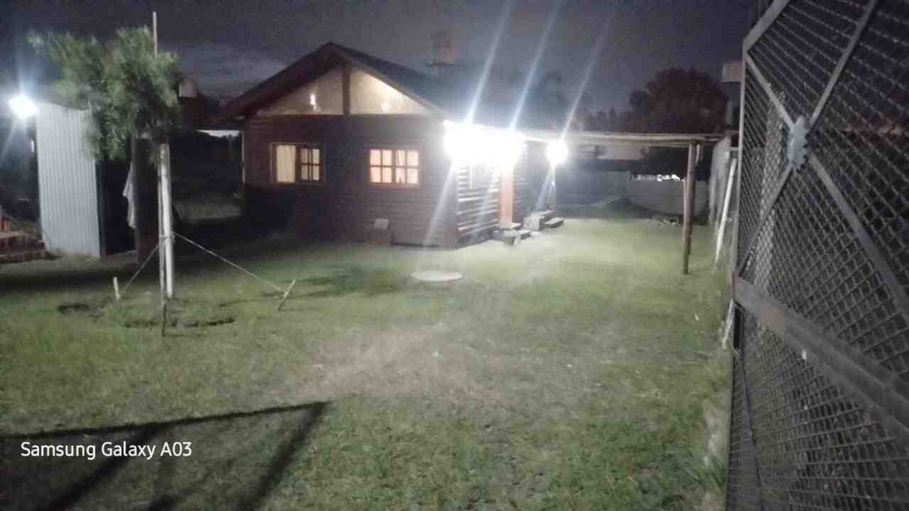Cabaña monoambiente construida totalmente en madera que consta de cocina, baño con ducha y pequeña galería. Pérgola de troncos y media sombra para vehículo y piscina de 8 m. x 4 m. con bordes atérmicos y equipo de filtrado. Baño de servicio exterior.
