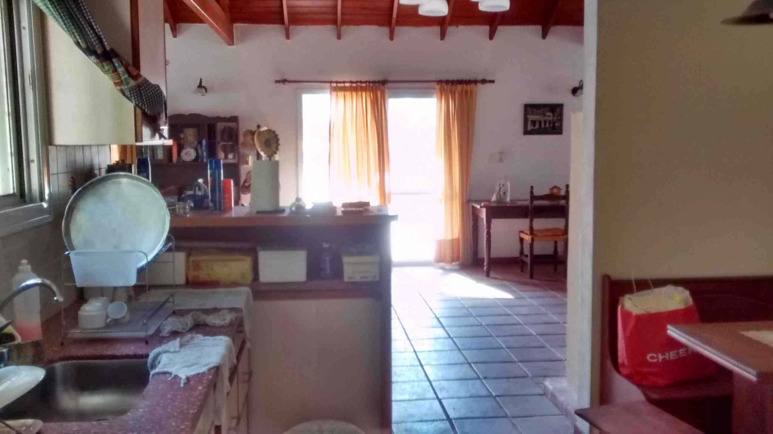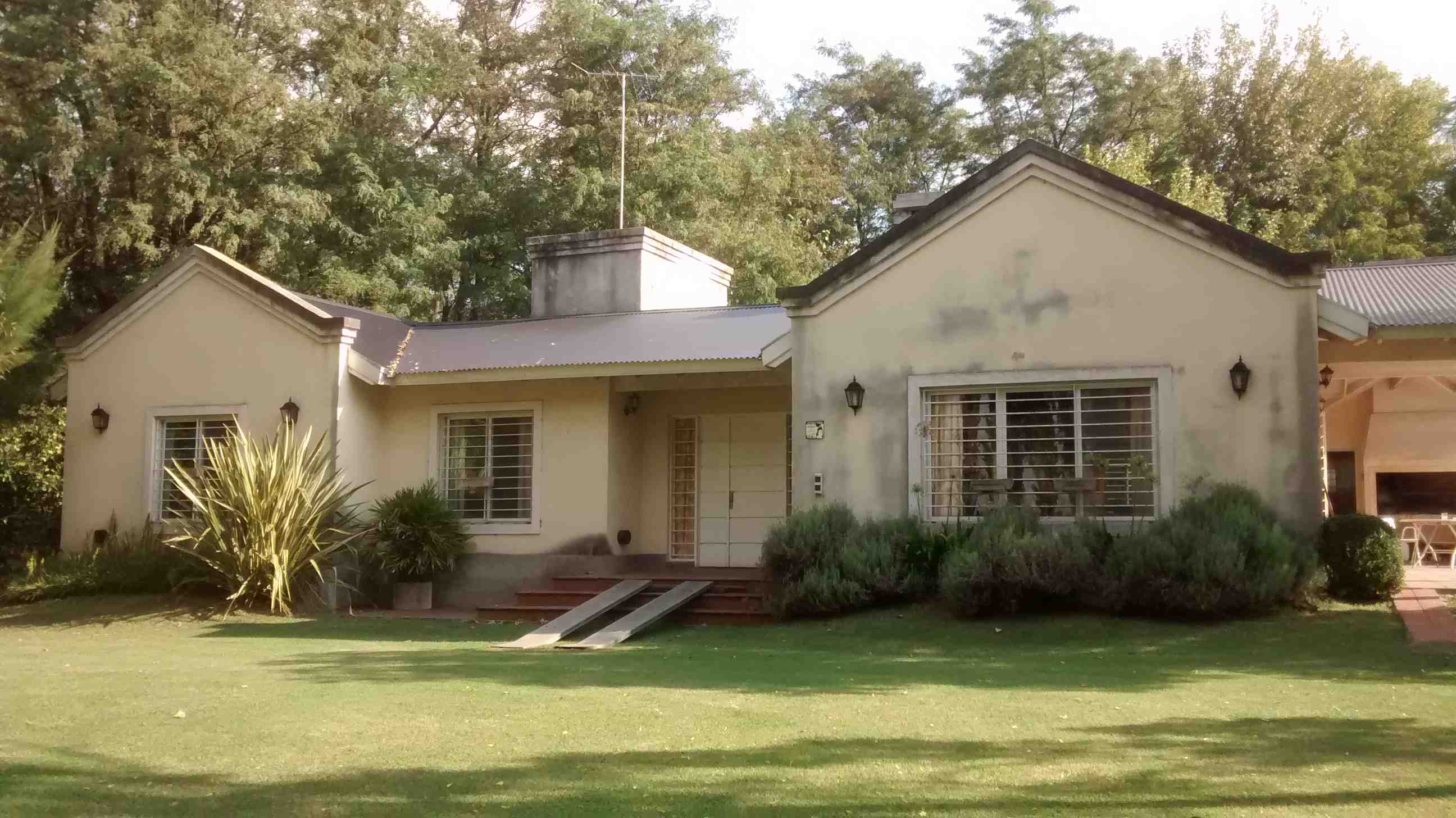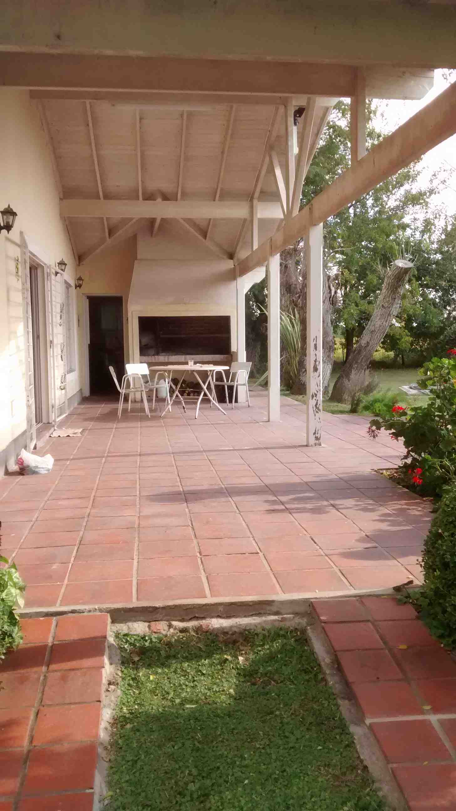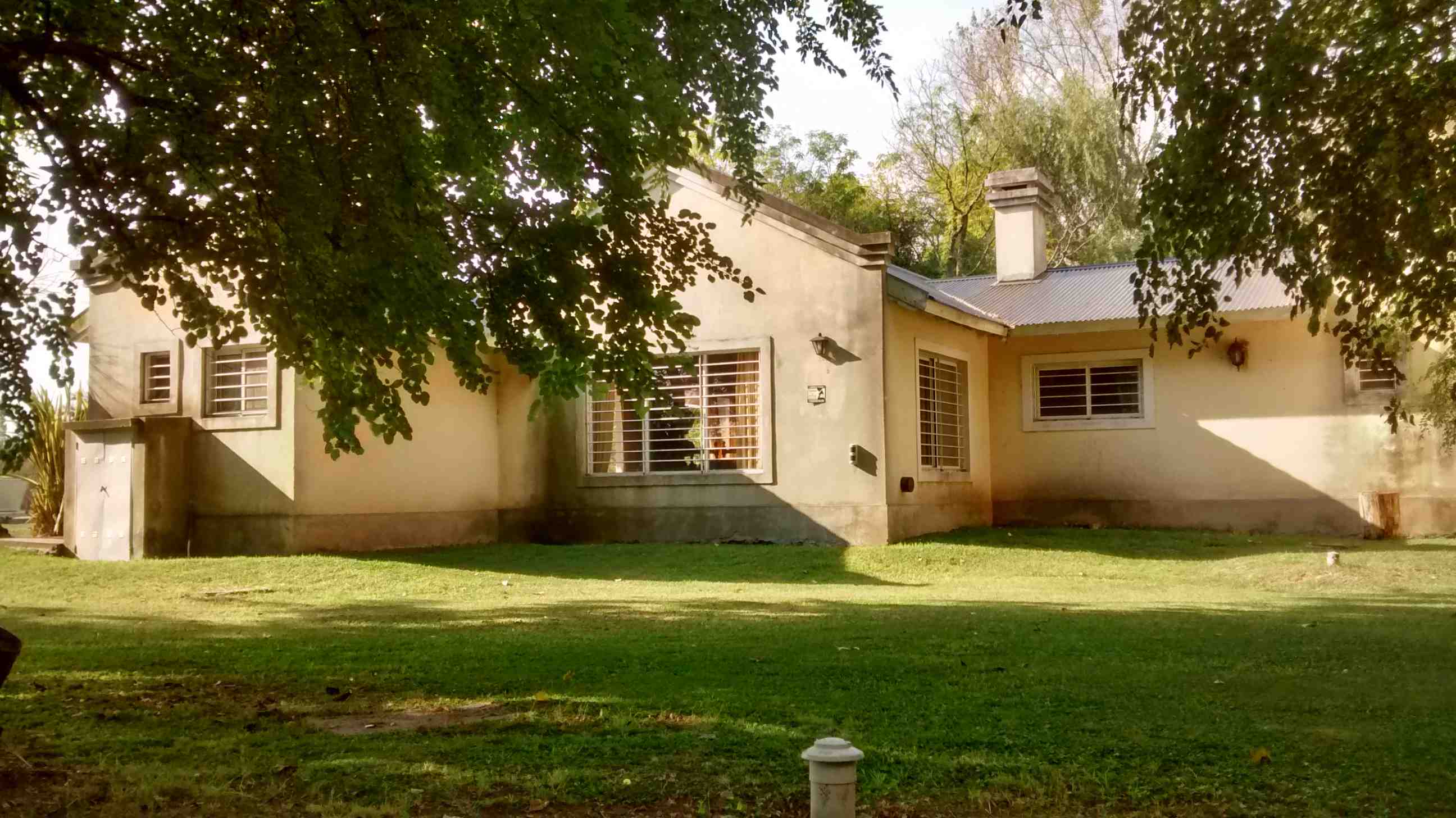 Casa Principal: Casa con cocina comedor diario amueblada y con barra; amplio living comedor integrados con hogar; toilette; baño completo compartimentado, pasillo distribuidor a baño y 4 dormitorios con placard con ventiladores de techo y calefactores. Galería con parrilla, lavadero y baño para piscina. Piscina de 8 m. por 4 m. con filtro, con guarda de venecitas, bordes y solarium atérmico y cercada. Antigüedad de 14 años. Posee planos. Techo de chapa de zinc negro con cielo raso de madera, pisos rústicos rojos, aberturas de aluminio blanco con rejas, muy luminosa y calefaccionada por calefactores de tiro balanceado. Iluminación con faroles en su exterior. Alarma. Tres perforaciones (molino con 2 tanques australianos y 2 bombas centrífugas), potreros, 2 bebederos y gallinero. Orientación: Noreste.