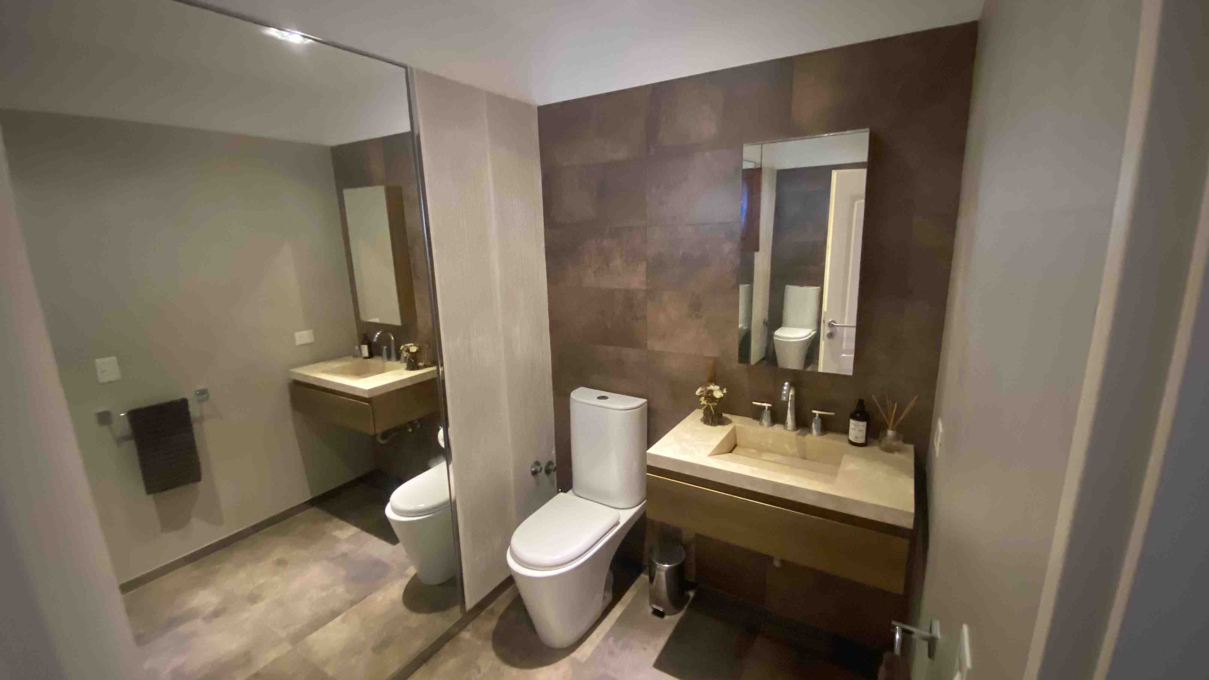En planta baja cuenta con un importante espacio de living con bodega – comedor, integrado a una moderna cocina con una isla con detalles y materiales de categoría, mucho lugar de guardado con amplios ventanales que dan luz y una vista increíble al parque y a la laguna, además de baño de cortesía y un amplio dormitorio en Suite con vestidor.